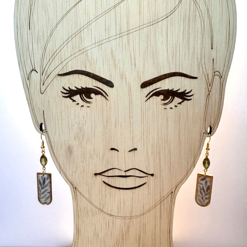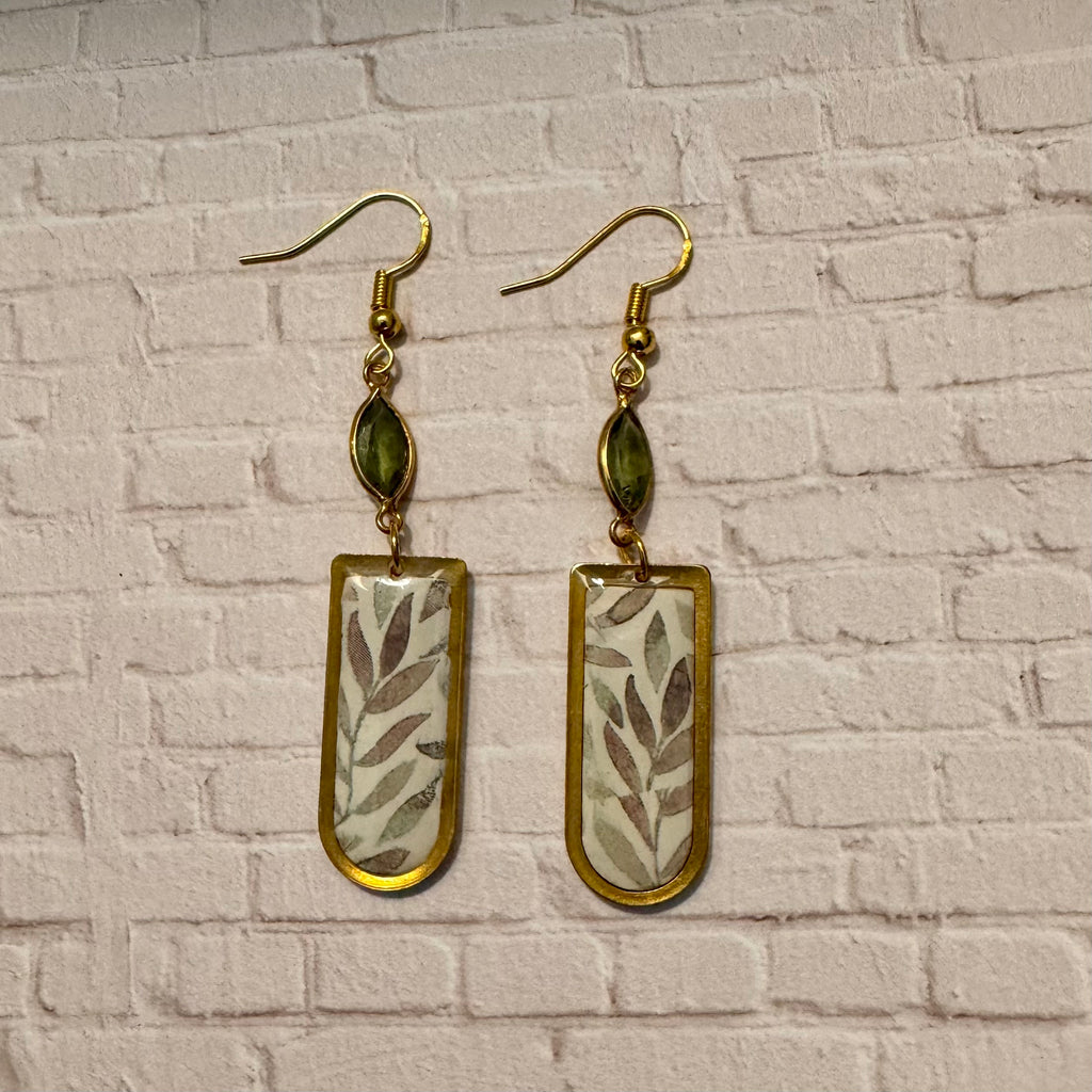 Olive(ish) colored leaves come together for a perfect fall look. Made of polymer clay with a matching bead and with resin on top.