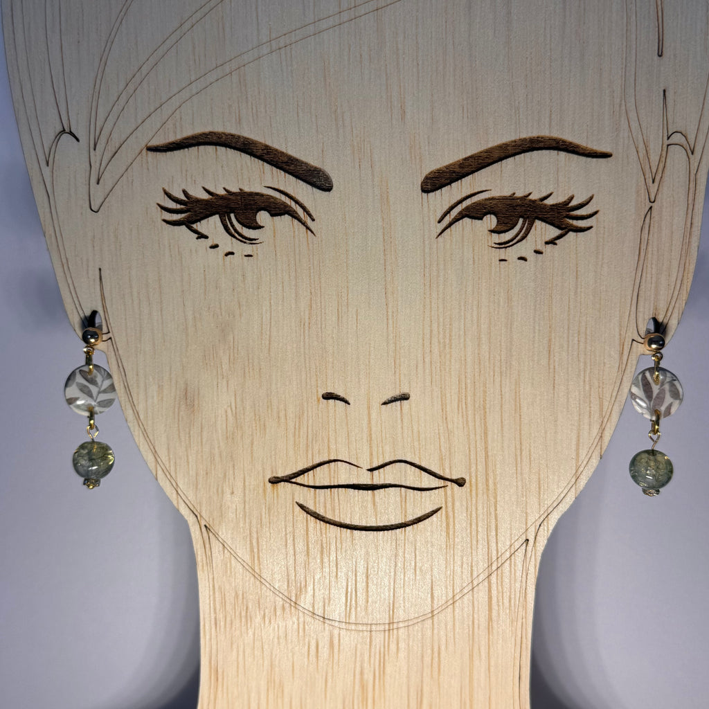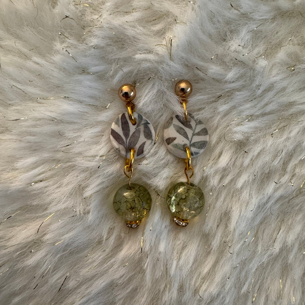 Olive(ish) colored leaves come together for a perfect fall look. Made of polymer clay with a matching bead and with resin on top.