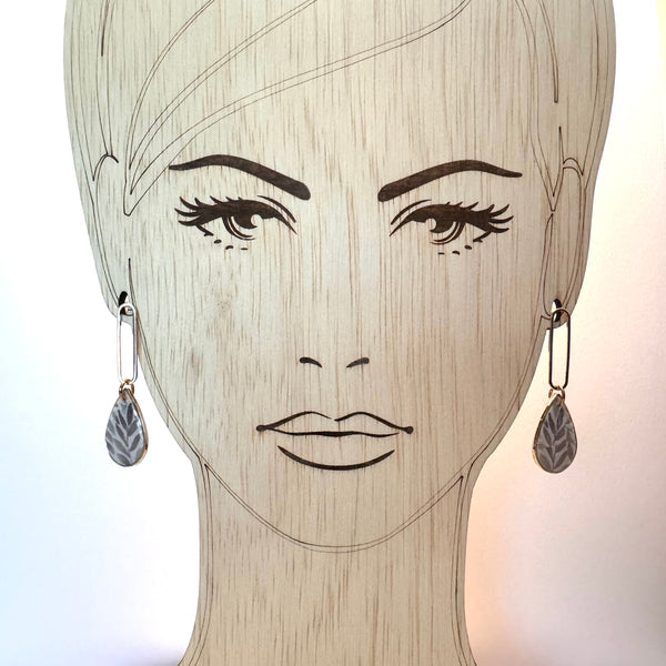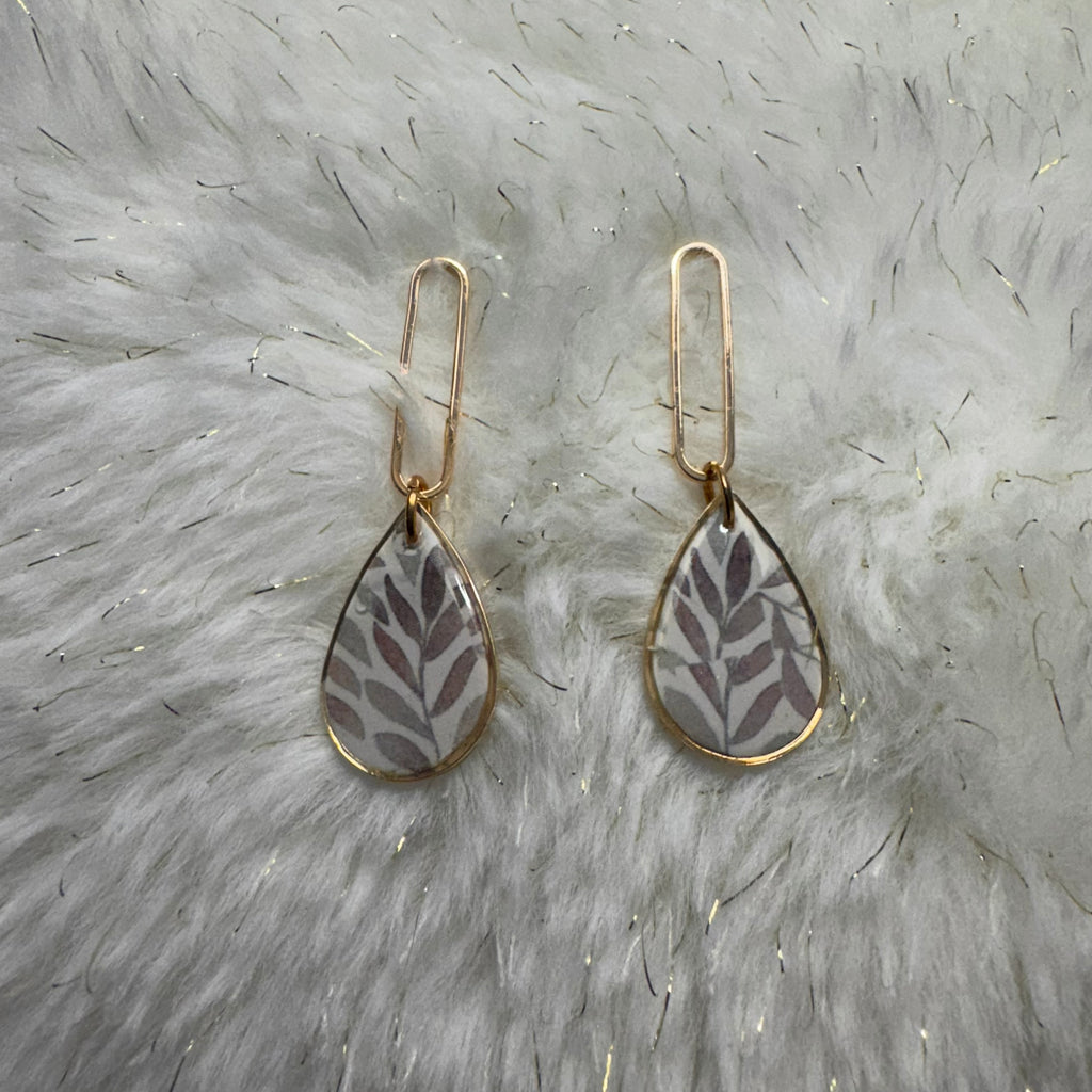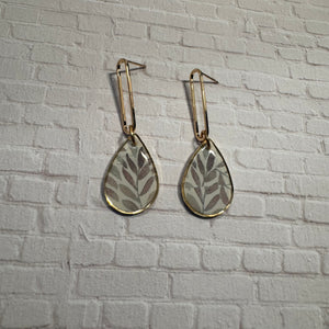 Olive(ish) colored leaves come together for a perfect fall look. Made of polymer clay with resin on top.